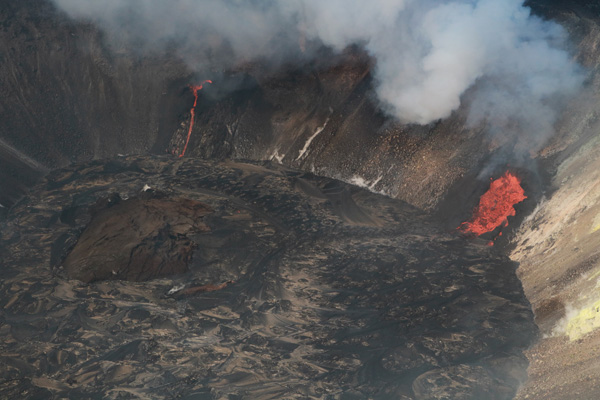 Vue aérienne du cratère de l’Halema’uma’u le 22 décembre 2020 (Source : HVO)