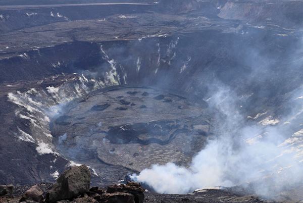 L’éruption du Kilauea (Hawaï) continue dans le cratère de l’Halema’uma’u. La lave est émise par une bouche dans la paroi nord-ouest du cratère et se jette dans le lac de lave. Le lac a une profondeur d’environ 220 mètres. Les émission de SO2 restent élevés à 800 t / jour.