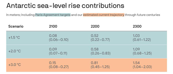 According to a a new study published in the journal Science Advznces on April 30th, 2021, the global sea-level rise due to the melting of Antarctic ice sheets in the next 1,000 years could have been underestimated by about 30%. Previous studies had estimated that if the West Antarctic ice sheet were to collapse, the sea levels would increase by about 90 centimetres. However, the new study suggests that an effect called the « water-expulsion mechanism » had been underestimated.