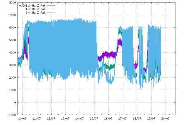 The fog which often invades Langihryggur does not allow to make good observations of the Fagradalsfjall eruption (Iceland). However, one can see from time to time that the volcano is still active. The tremor behaves in an irregular way, with intense periods between pauses. It looks as if lava is still flowing.