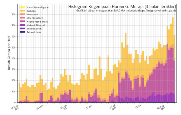 Histogramme montrant l’activité du Merapi ces dernières semaines