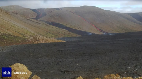 Après plusieurs jours de pause, l’éruption a repris sur la Péninsule de Reykjanes (Islande). Vers 19h15 (heure locale) le 11 septembre 2021, plusieurs sorties de lave sont apparues au sud du cratère actif. La lave a commencé à s’étaler autour de ces ouvertures. L’incandescence est ensuite réapparue à l’intérieur du cratère, signe du retour de la lave.
