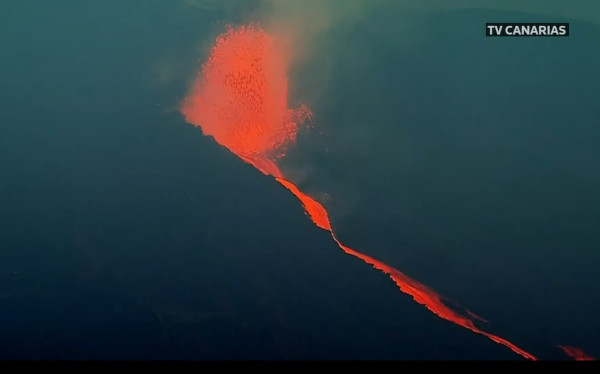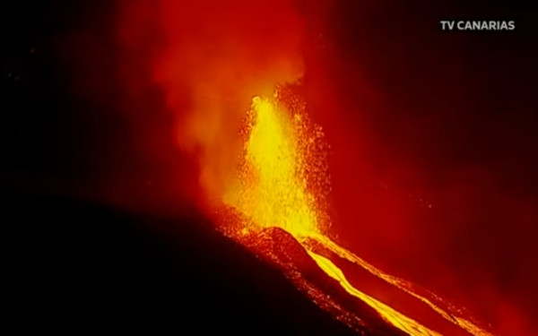 9:00 am: According to local authorities, the front of the dual lava flow from the eruptive vent of Cumbre Vieja is located between 800 and 1000 meters from the coast of Tazacorte. The southern branch is moving slowly, while the northern flow is more active and is located in the Todoque area. The evacuation of four districts of Todoque, decided on Sunday, remains in force.