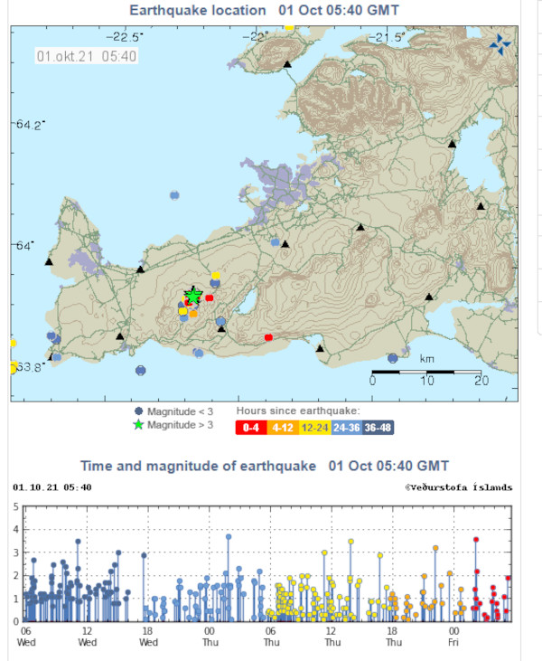 Nothing new on the Reykjanes Peninsula (Iceland) this morning. Questions remain as to the source of the seismic activity observed in recent days. Is it volcanic or tectonic? The opinions of Icelandic scientists diverge. The big question is to know whether it is linked to the Fagradalsfjall eruption which has been at a standstill for almost two weeks. Is the eruption over? Is there a migration of magma in the depths of the Earth? No one is able to answer this question. The seismic or volcanic prediction remains at a very low level. Fortunately, no population would be really threatened in the short term if lava decided to break through the surface in this part of Iceland.