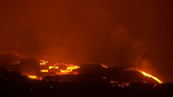 Coulées du Cumbre Vieja le 14 octobre 2021 au soir (Capture écran webcam)