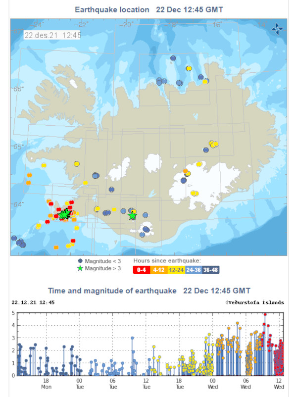 In a first press release issued on December 22nd, 2021 at 02:15 am, OVPF indicated that « since 01:15 local time (21:15 UTC), a seismic crisis has been recorded on the OVPF instruments. This seismic crisis has been accompanied by rapid deformation for some minutes. This indicates that magma is leaving the reservoir and is ascending towards the surface. An eruption is likely shortly, in the next few minutes or hours. «