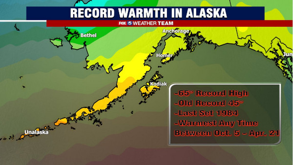 Selon la NOAA, l’Alaska se réchauffe plus rapidement que tout autre État américain et deux fois plus rapidement que la moyenne mondiale depuis le milieu du 20ème siècle. Depuis 2014, il y a eu 5 à 30 fois plus de records de températures élevées que de records de températures basses. Une étude effectuée en 2019 a révélé que les derniers records de températures élevées dépassaient les records de températures basses dans un rapport de 2 contre 1. Cette constatation a été corroborée par l’Environmental Protection Agency (EPA). Selon l’Agence, « si le climat était complètement stable, on s’attendrait à voir un équilibre entre les records de hautes et de basses températures. Depuis les années 1970, les records de températures maximales sont devenus plus fréquents que les records de basses températures à travers les États-Unis. La décennie de 2000 à 2009 a connu deux fois plus de records de températures maximales que de températures minimales. »
