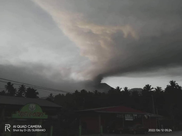 After a first eruption on June 5th, 2022, a new phreatic eruption occurred at Bulusan (Philippines) in the early morning of June 12th, 2022 (local time). The event lasted 18 minutes. Heavy ashfall affected at least 13 villages which had to be cleaned by the army. Loud rumblings were heard by residents within 5 km from the volcano. By daybreak, several active vents at the summit could be observed spewing ash and steam to a height of at least 500 m.