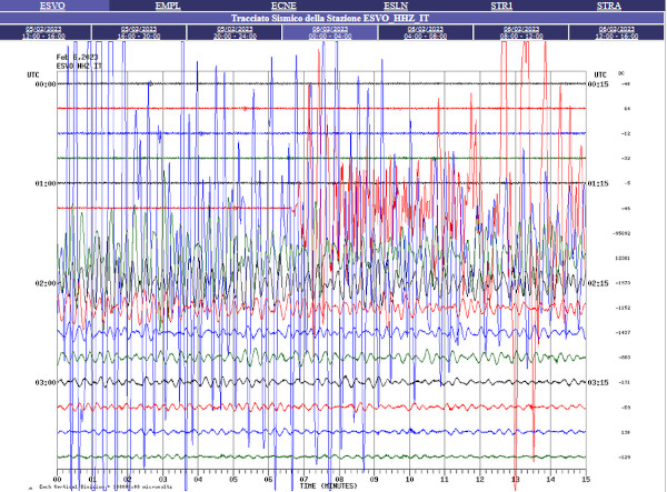 Le séisme en Turquie affole les sismographes sur l’Etna (Source: INGV)