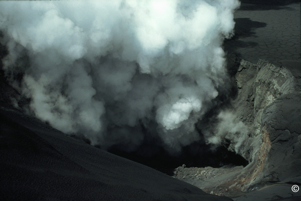 Bouche éruptive dans le cratère du Bromo (Photo: C. Grandpey)