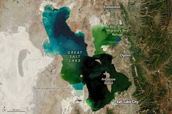 Le Grand Lac Salé en juillet 2022 (Source : NASA)