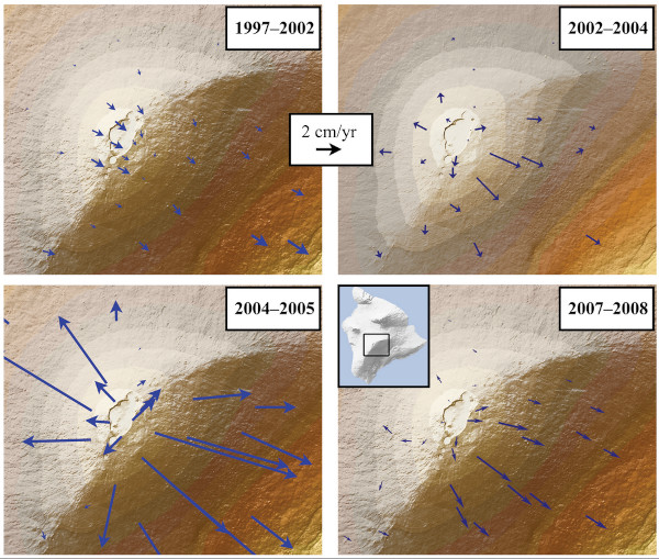 Au début des années 1970, des inclinomètres électroniques ont commencé à être installés sur le Kilauea. Ces instruments sont insérés dans des forages d’environ 5 mètres de profondeur, afin d’être à l’abri des intempéries, et ils peuvent fournir des mesures d’inclinaison précises, jusqu’à une fraction de microradian chaque minute.