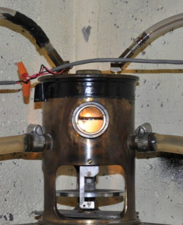 The water tube tiltmeter consists of three “pots” of water connected by tubes such that the water can freely flow between them. One pot is placed in the center, and the other two are placed east and north of the center pot. The water in the tubes will always seek to be level, but when the ground tilts and moves the pots up or down, it will look like the water level is moving down or up. By reading the depth of the water in each pot, one can work out how much the ground has tilted since the last reading.