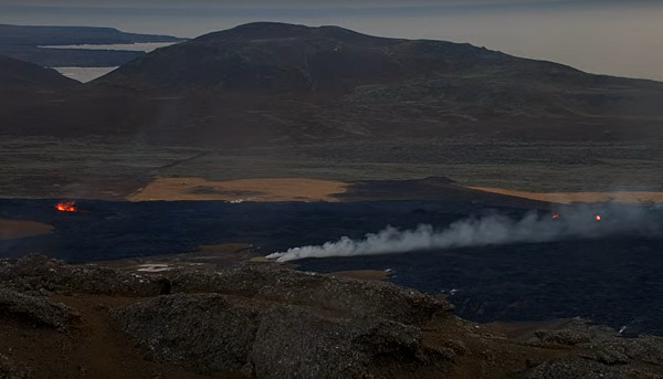 1:30 pm : Local authorities confirm what the webcams were showing in the past hours : the southern fissure near Grindavik has ceased erupting, with lava mainly flowing from the northern fissure. As I put it before, protective barriers have proved effective. The lava seems to be mainly issuing from two to four vents on the initial northern fissure that opened on January 14th in the morning.
