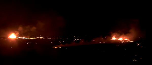 13h30 : Les autorités locales confirment ce que montraient les webcams ces dernières heures : la fissure sud près de Grindavik a cessé d’émettre de la lave. Cette dernière s’écoule principalement de 2 ou 4 bouches dans la fissure nord initiale ouverte le 14 janvier au matin.. Comme je l’ai écrit précédemment, les digues de protection se sont révélées efficaces et ont dévié la lave émise par la fissure nord.