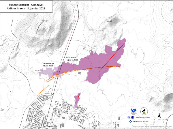 All the key response teams have been meeting in the morning of January 15th to review the situation in Grindavík. The town lacks hot and cold water and electricity. The participants in the meeting considered how to save valuables and assess the situation.The town is obviously dangerous because of the damage caused by the lava. Moreover, it is important that animals still in Grindavik be rescued as soon as possible as there is no more water in the town.