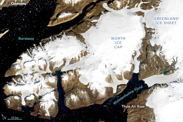 Selon une étude publiée le 14 février 2024, la superficie abandonnée par la glace au Groenland au cours des trois dernières décennies est environ 36 fois plus grande que la ville de New York. Cette surface laisse désormais la place aux zones humides et aux arbustes.