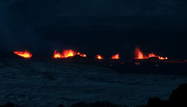 7 heures : L’éruption continue ce matin, mais l’activité décline peu à peu sur la fracture éruptive. Les fontaines de lave jaillissent moins haut. La lave nouvellement émise a tendance à s’accumuler sur celle émise dimanche soir. C’est une bonne nouvelle pour la Suðurstrandarvegur qui pourrait ainsi être épargnée. La lave ne devrait pas, non plus atteindre la mer.