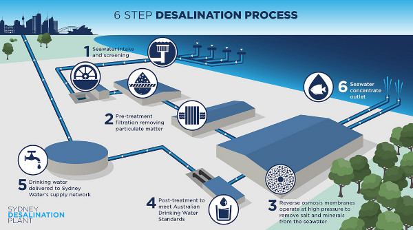 Illustration du processus de dessalement de l’eau de mer (Source : sydneydesal.com)