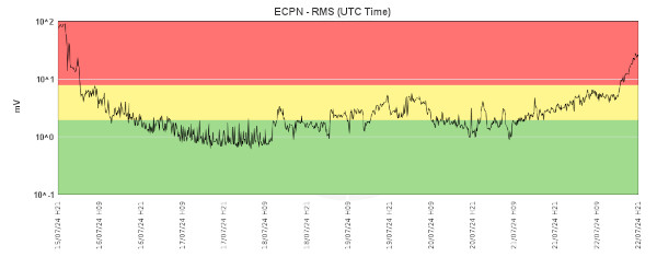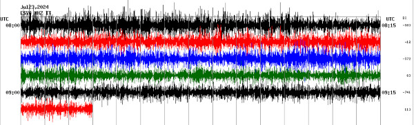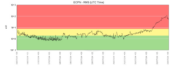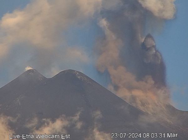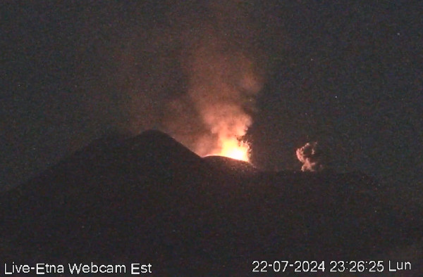 July 23rd, 2024 – 7 a.m. (local time): Begun in the afternoon of July 22nd, 2024, Strombolian activity in the Voragine intensified over the following hours and became particularly strong from 3 a.m. This activity produces ash emissions which, carried by the wind, are drifting ESE. The average amplitude of the volcanic tremor continues to increase and reaches a very high level. As in previous eruptive episodes, its source is located just east of Voragine at an altitude of approximately 2900 m above sea level.