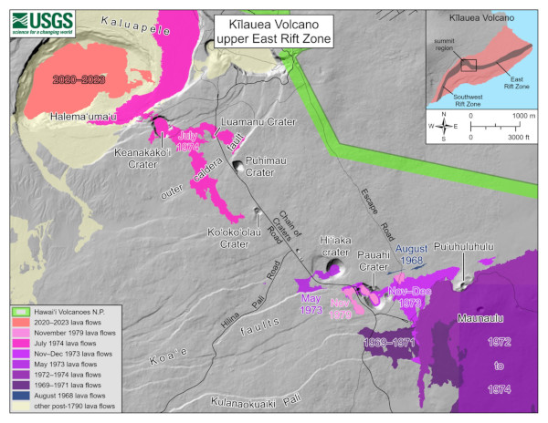 Si une éruption se produit, il n’est pas non plus possible de dire à quel endroit, mais la zone située entre le cratère Hi’iaka et le Mauna Ulu est à prendre en compte si on se réfère à l’activité éruptive du passé dans cette zone. Les éruptions passées dans ce secteur du Kilauea ont duré de quelques heures à environ un mois.