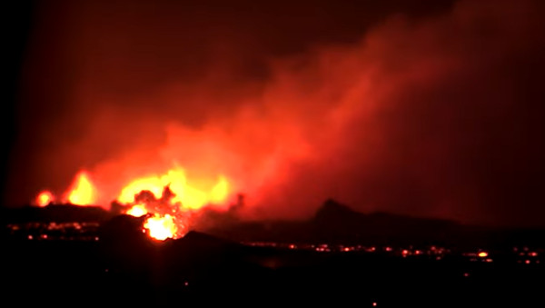 La majeure partie de la coulée de lave progresse vers le nord-ouest, en déclenchant des incendies de végétation sur son passage.