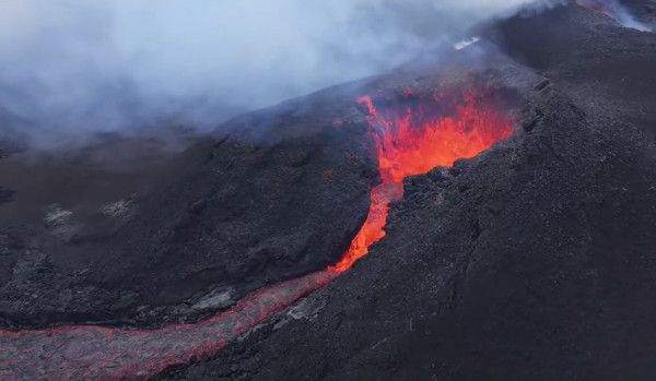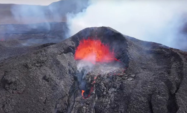 On y voit un jeune homme en chaussures basses, vêtu légèrement, sans équipement particulier, sans gants ni masque à gaz, en train de déambuler autour de l’une des bouches actives de l’éruption, tout en filmant à l’aide de son sacrosaint smartphone. Ayant entendu un drone s’approcher de lui, il le salue aimablement, comme s’il s’agissait d’une personne de sa connaissance.