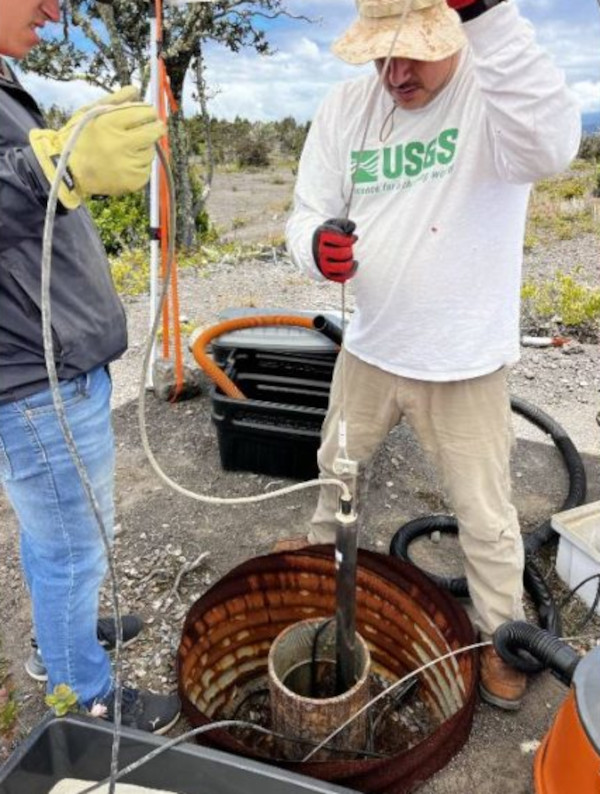 Maintenance d’un inclinomètre de forage au sommet du Kilauea (Crédit photo : HVO)