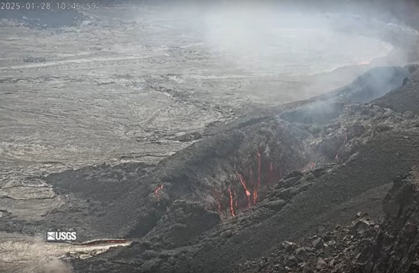 Les épisodes éruptifs se succèdent dans le cratère se l’Halema’uma’u sur le Kilauea (Hawaï). Le 7ème épisode de la série a débuté à 18h41 (heure locale) le 27 janvier 2025 et s’est terminé brusquement à 10h47 (heure locale) le 28 janvier. Les bouches nord et sud ont cessé d’émettre de la lave à peu près au même moment. Les coulées de lave générées par cet épisode ont recouvert plus de la moitié du plancher du cratère. La fin de l’épisode éruptif a coïncidé avec un changement rapide de la déflation à l’inflation au sommet et une diminution de l’intensité du tremor. Le retour à l’inflation indique qu’un 8ème épisode éruptif est susceptible de commencer sous peu.