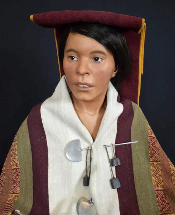 Après avoir réalisé un moule en silicone du buste, il a ajouté des centaines de cheveux et de pores individuels tout en nuances de brun et de rose. Tout cela a pris dix semaines. Le résultat, habillé de robes tissées par des Péruviennes du Centre des textiles traditionnels, constitue l’attraction principale de l’exposition « Capacocha : dans les pas des dieux incas » qui se tient jusqu’au 18 novembre au Musée des sanctuaires andins, à Arequipa.