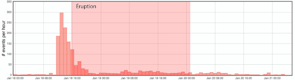 Profil de la sismicité pendant et après l’éruption (Source : OVPF)