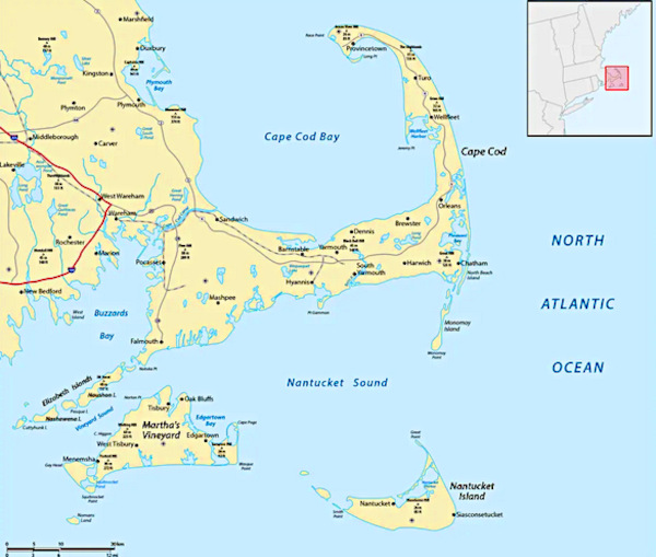 À l’été 2025, des chercheurs de l’École des Mines du Colorado ont mené une expédition pour approfondir des recherches datant de la fin des années 1960 et du début des années 1970 et concernant la présence d’eau douce sous le plancher océanique au large de la côte est. Cette expédition, baptisée Expédition 501, a duré trois mois et a permis de faire remonter 50 000 litres d’eau douce sous le plancher océanique à trois endroits différents au large des îles de Nantucket et de Martha’s Vineyard. (voir carte ci-dessous). Il semblerait même que le réservoir s’étende plus profondément sous terre et soit donc plus important que ne le laissaient supposer les premières estimations.