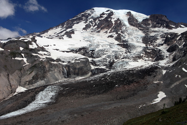 Nouveau coup mortel infligé aux glaciers, comme ceux du Mont Rainier (Photo: C. Grandpey)