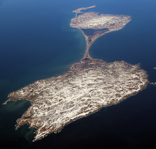 Saint-Pierre-et-Miquelon est un archipel français au sud de l’île canadienne de Terre-Neuve. Il est principalement composé de deux îles : l’île Saint-Pierre, la plus petite des deux, qui abrite 86 % de la population, au côté de Miquelon, constituée de trois presqu’îles reliées entre elles par deux tombolos.