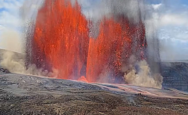 Depuis 9h17 (heure locale) le 10 mars 2026, une fontaine de lave est en cours de formation dans la bouche éruptive nord à l’intérieur du cratère de l’Halema’uma’ au sommet du Kilauea. La prévision du HVO était exacte.