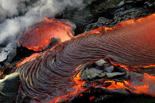 Sortie de lave d’une plateforme littorale à Hawaï (Photo: C. Grandpey)