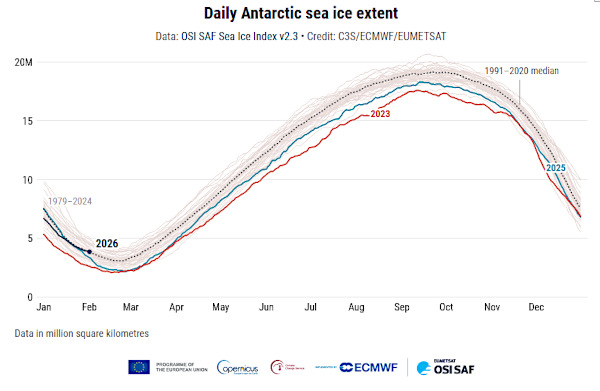 Après des chutes de neige de plusieurs dizaines de centimètres début février 2026, le manteau neigeux de la Sierra Nevada californienne n’atteint plus que 42 % de la moyenne pour cette période de l’année. La fonte des neiges au printemps et en été fournit généralement 30 % des ressources en eau de l’État. Heureusement, les réservoirs californiens sont plus remplis que la moyenne grâce aux récentes années humides. La vague de chaleur actuelle va encore réduire le manteau neigeux déjà insuffisant de l’Ouest. Cela pourrait entraîner une aggravation de la sécheresse dans le Sud-Ouest et un risque accru d’incendies au début de l’été, avant l’arrivée de la mousson.