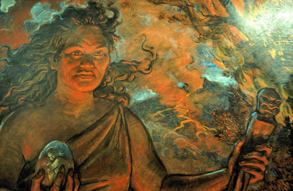 Les traditions orales hawaïennes attribuent l’activité volcanique à Pelehonuamea, déesse hawaïenne des volcans, également connue sous le nom de Pélé, créatrice de la terre.