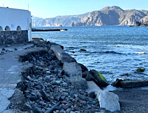 Just a few days ago, the Municipality of Lipari allocated 10,000.00 euros for the “grooming” and leveling of the beach. Unfortunately, this intervention will not be feasible in the area invaded by the sea. If immediate action is not taken, with a beach nourishment, there is a real and concrete risk that without such intervention the state of beach retreat may progressively and permanently extend, becoming irrecoverable, with damage also to homes, accommodation facilities, and the nearby pier.