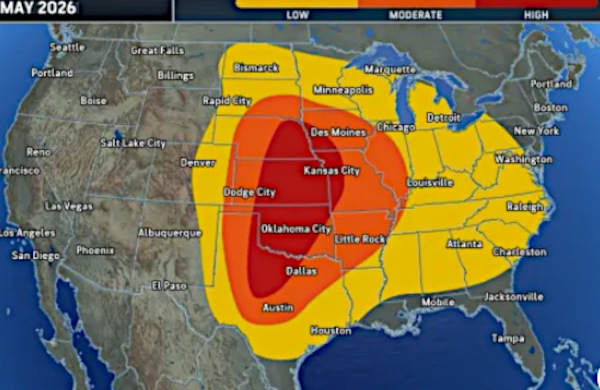 Prévision de tornades aux États Unis pour le mois de mai 2026 (Source : AccuWeather)