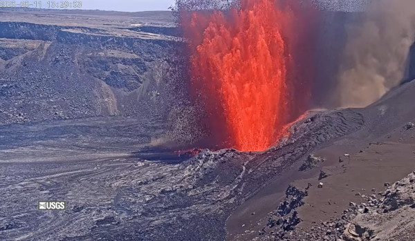 Les spectaculaires fontaines de lave émises par la bouche éruptive nord sont apparues à 12 h 45 (heure locale) le 11 mai 2025. Elles ont atteint 150 m et ont alimenté des coulées qui ont rapidement couvert environ 10 à 20 % du plancher du cratère de l’Halema’uma’u. La bouche éruptive sud est restée inactive.