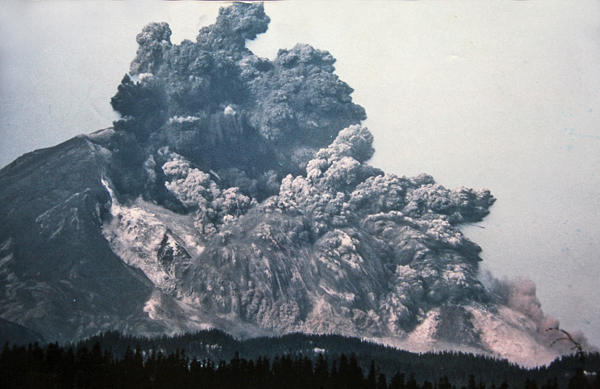 Le matin du 18 mai, un important glissement de terrain, suivi instantanément d’une explosion latérale dévastatrice a marqué le début de l’éruption. Voyageant à plus de 650 km/h, le blast a dévasté 600 km2 de nature sauvage du Pacifique Nord-Ouest. Des lahars, ont déferlé dans les vallées, transportant des débris jusqu’au fleuve Columbia. Les cendres de l’éruption sont montées haut dans l’atmosphère et ont dérivé vers l’est, jusqu’au Minnesota.
