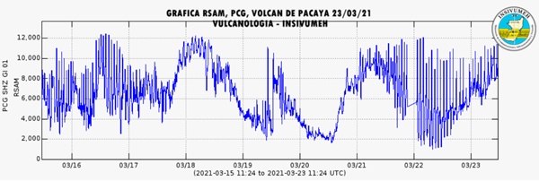 Effusive activity on the western flank continues with the reactivation of the lava flow front at La Breña. The flow again moved west, while the front at the Campo Alegre farm has come to a halt. The total length of the lava flow exceeds 3000 metres. Lava flows cause fires in the vegetation and crops they encounter, as well as the destruction of buildings and disruption of roads. The lava is approaching dangerously the villages of El Patrocinio, San Vicente Pacaya. It is planned to try to channel the lava if the threat becomes higher.