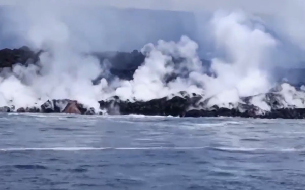 Arrivée de la lave dans la mer (Crédit photo: Instituto Geofisico)