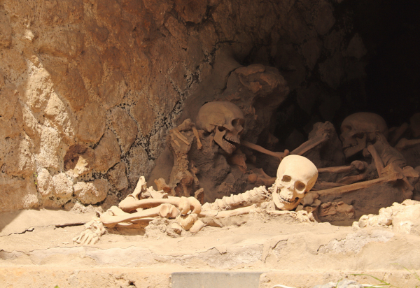 Même si Pompéi offre des merveilles au visiteur, à titre personnel et en tant que volcanophile, je préfère Herculanum qui montre parfaitement l’épaisseur de matériaux émis par le Vésuve. Le moment le plus émouvant de la visite est la vue sur les hangars à bateaux dans lesquels s’était réfugiés les habitants. Les moulages en résine des squelettes offrent aux visiteurs une image impressionnante de la catastrophe. Aujourd’hui, ces hangars se trouvent à 400 mètres du littoral !