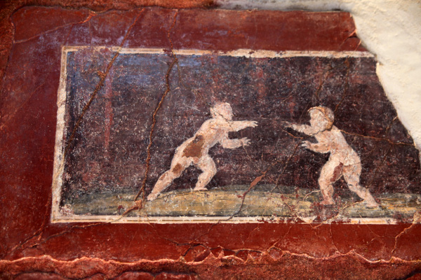 Stabies, en latin Stabiae, l’ancien nom de Castellammare di Stabia, est peu connue de la plupart des gens, éclipsée par la renommée de Pompéi et d’Herculanum. C’était pourtant une ville très importante dans l’ancienne région du Vésuve. Comme à Oplontis, avant l’éruption du volcan, de nombreuses villae étaient construites dans une position panoramique, conçues principalement à des fins résidentielles, avec de grandes pièces d’habitation, des thermes, des portiques et des nymphéas magnifiquement décorés. Seules quelques-unes peuvent actuellement être visitées, comme la villa Arianna ou la villa San Marco, séparée de la villa Arianna par une petite route.