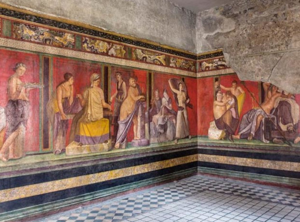 The Villa of the Mysteries gets its name from a series of frescoes, dating back to the first century BC, that depict a ritual dedicated to Bacchus, the god of wine, fertility and religious ecstasy. The villa included its own winepress, common for wealthy families at the time.