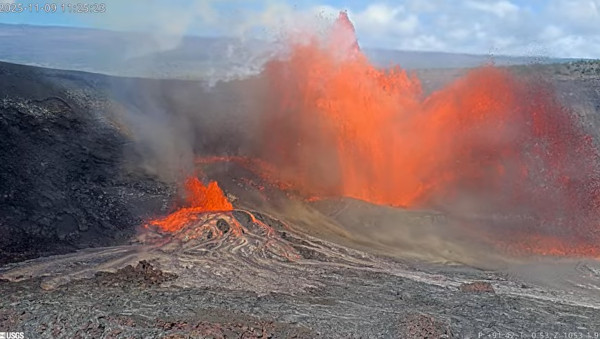 L’Épisode 36 de l’éruption du Kilauea (Hawaï) s’est brutalement achevé le 9 novembre 2025 à 16h16 (heure locale), après un peu moins de 5 heures de fontaines de lave. Les fontaines ont atteint une hauteur maximale de 300 à 330 mètres durant cet épisode, produisant environ 8 à 9 millions de mètres cubes de lave. Le débit éruptif moyen des deux fontaines a dépassé 500 mètres cubes par seconde ; c’est le débit le plus élevé enregistré lors de cette éruption. Les coulées de lave ont recouvert environ 60 à 80 % du plancher du cratère de l’Halemaʻumaʻu. La fin de l’éruption a coïncidé avec une déflation sommitale et une diminution de l’intensité du trémor éruptif. L’inclinomètre sommital a enregistré une déflation de 23,5 microradians lors de l’Épisode 36 et une inflation de 3 microradians le matin du 10 novembre. Selon le HVO, il se pourrait que l’Épisode 37 se déclenche entre le 22 et le 30 novembre 2025.