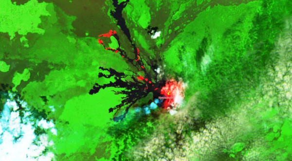 Bien que le panache ait été partiellement masqué par des nuages, l’analyse infrarouge a révélé des émissions continues depuis le cratère sommital avec une dispersion vers le nord et le nord-ouest.