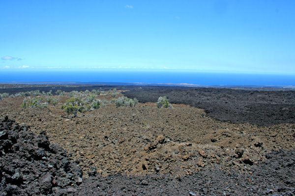 La plupart des gens pensent que l’on ne rencontre qu’un type de lave sur les volcans hawaiiens qui sont souvent considérés comme l’exemple parfait de lave pahoehoe, c’est-à-dire une lave très fluide présentant une surface lisse. C’est vrai, mais en partie seulement car on trouve également de la lave a’a à Hawaii, aussi bien sur le Kilauea que sur le Mauna Loa.